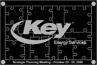 This puzzle was designed for Key Energy Services in Texas as a teaming building exercise at a corporate training meeting. Each executive received a piece of the puzzle and as a group they needed to solve the puzzle by placing their piece in the correct position. |