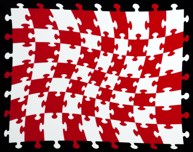 This based off the "Hand In Glove" puzzle except with a twist that give the 63 pieces a different look and feel. Because of the twist each piece has a unique placement.