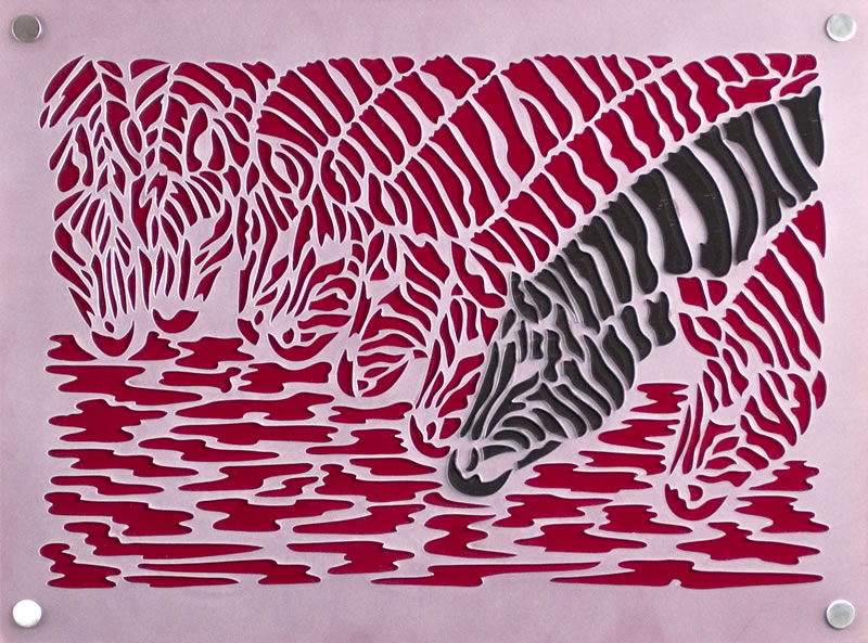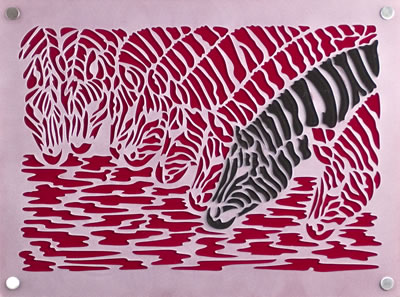 • Computer Designed Zebras is a design by Aurora Sidney-Ando and is a beautiful depiction of zebras at a water hole. It is more art than puzzle since some of the pieces are very small. Can be a puzzle or wall-mounted.