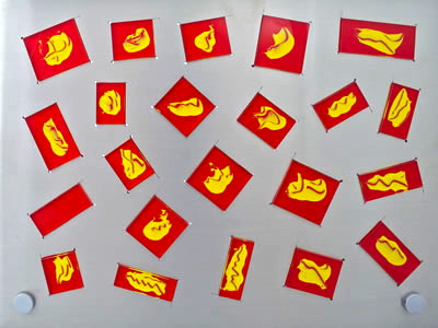 Puzzle Art is derived from the cut-out sheet from the which the metal puzzle pieces are cut. Acrylic pieces have been cut, painted, and fitted into each space. This makes for a very interesting table-top piece of art. Laser cut lines can be seen as they surround the pianted pieces.