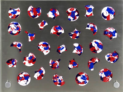 Puzzle Art is derived from the cut-out sheet from the which the metal puzzle pieces are cut. Acrylic pieces have been cut, painted, and fitted into each space. This makes for a very interesting table-top piece of art. Laser cut lines can be seen as they surround the pianted pieces.